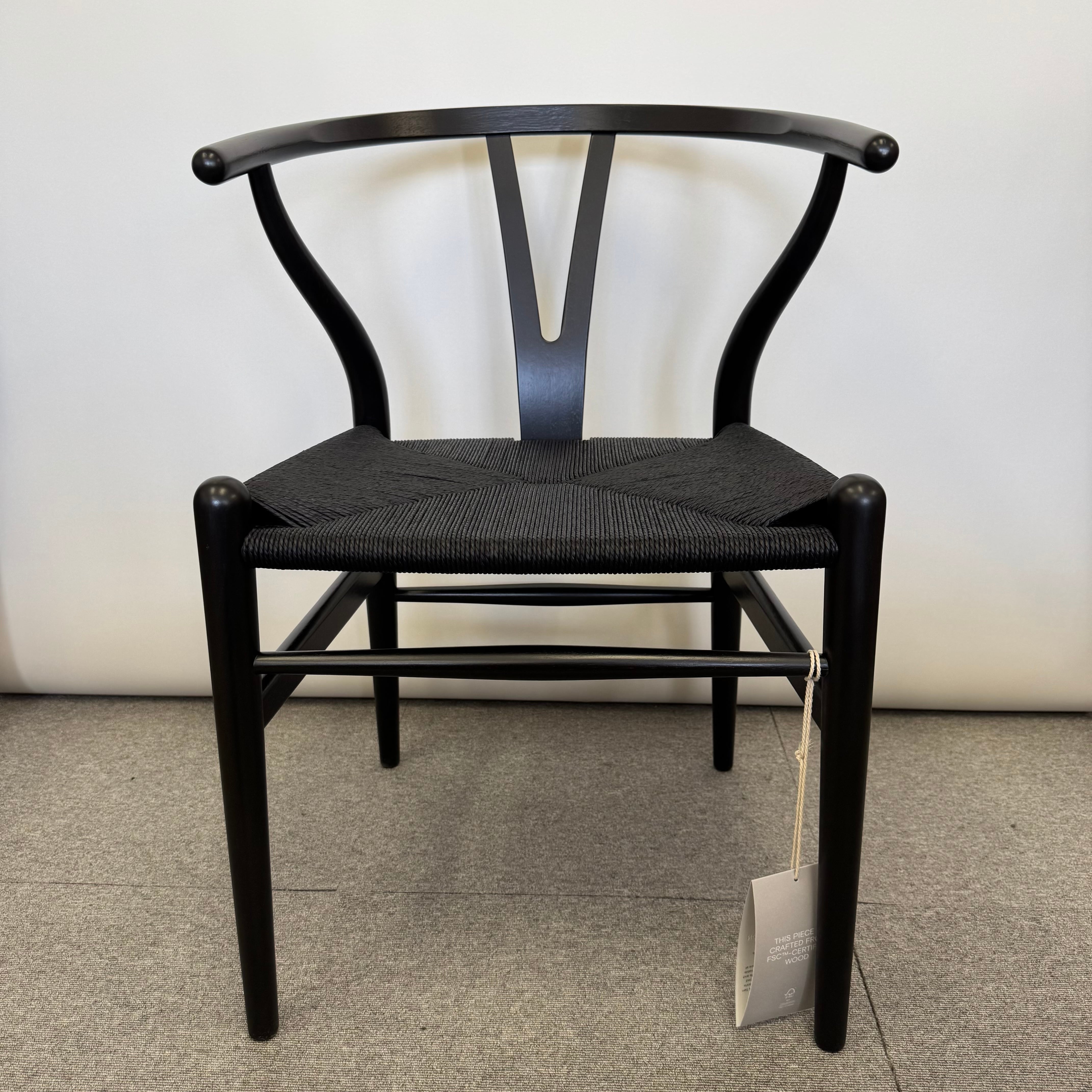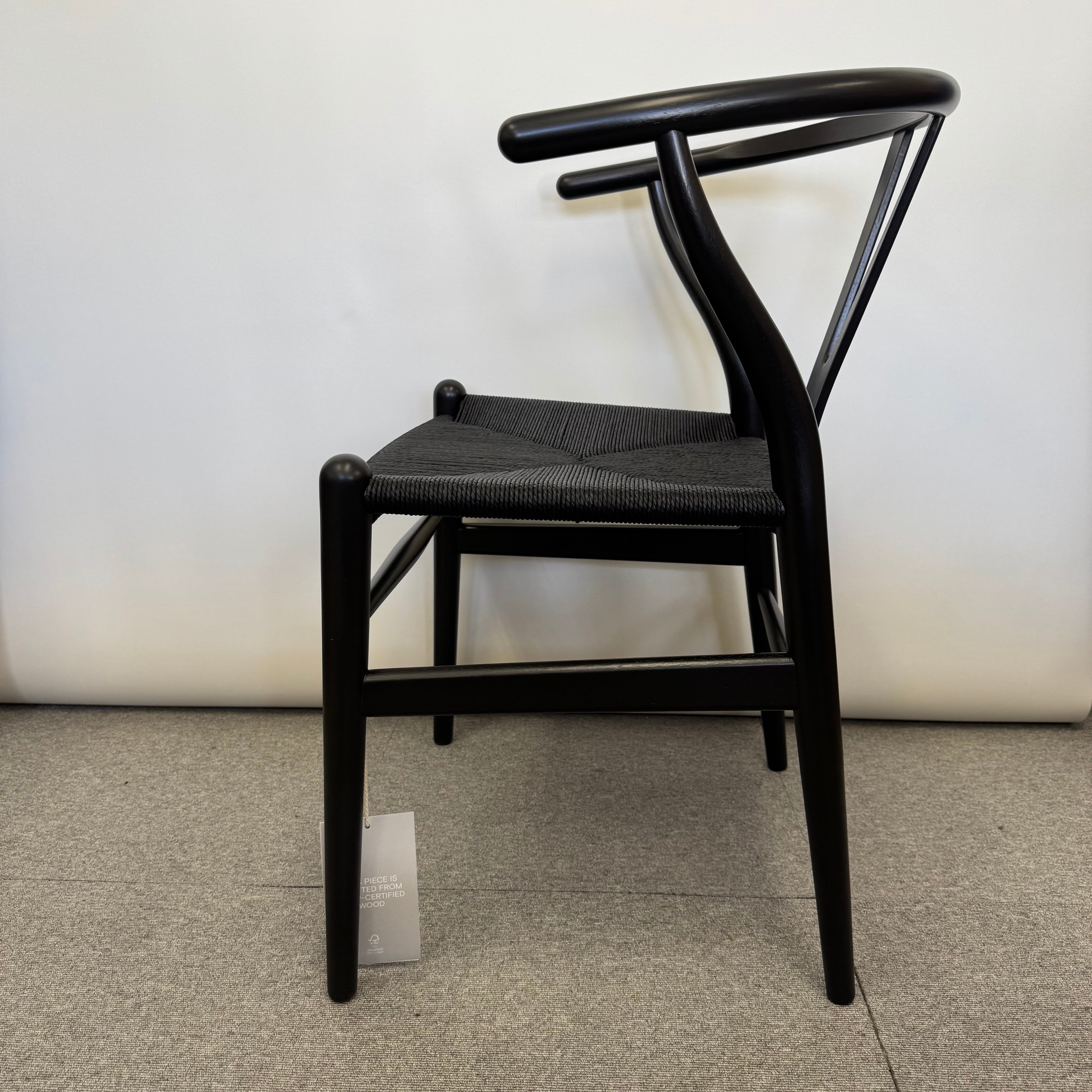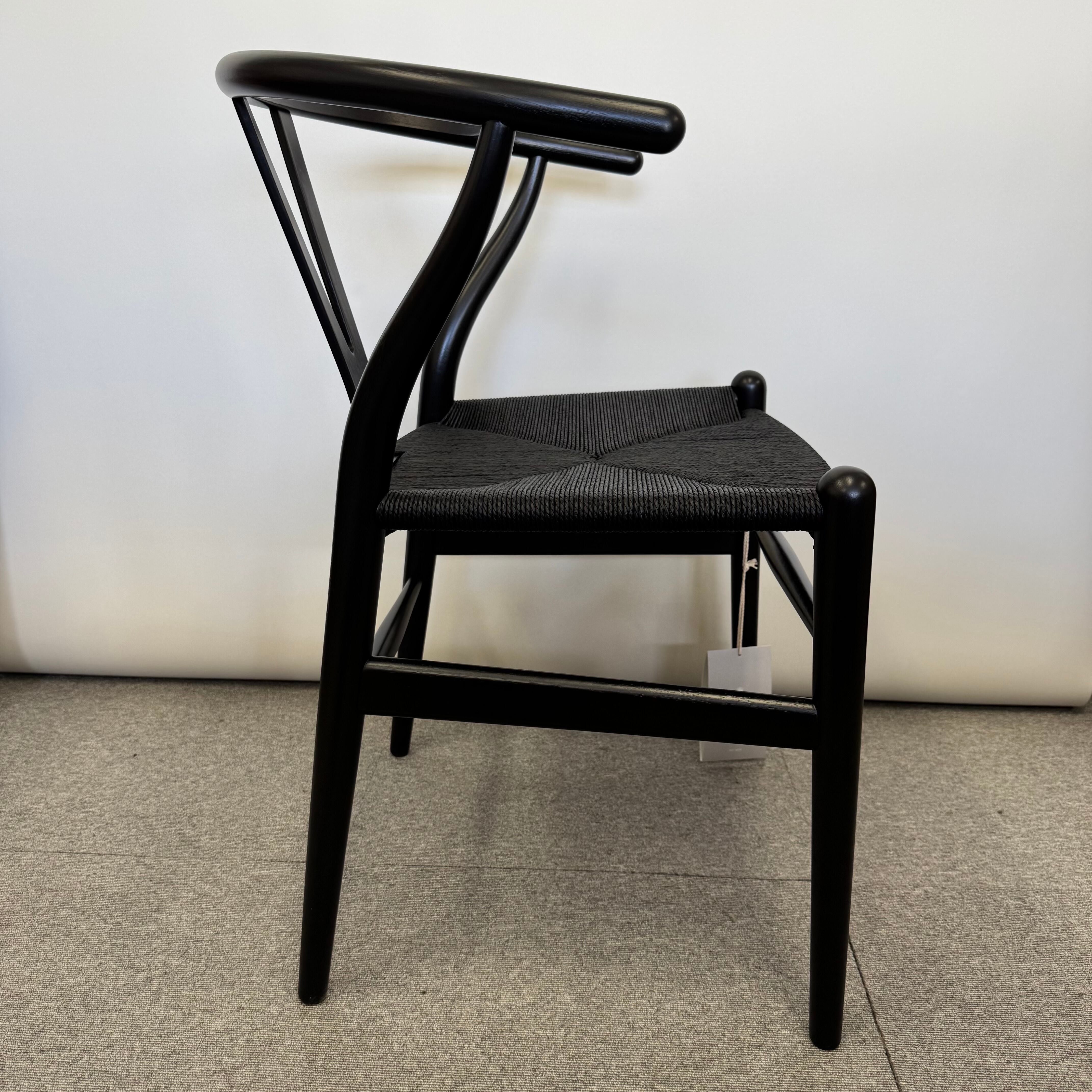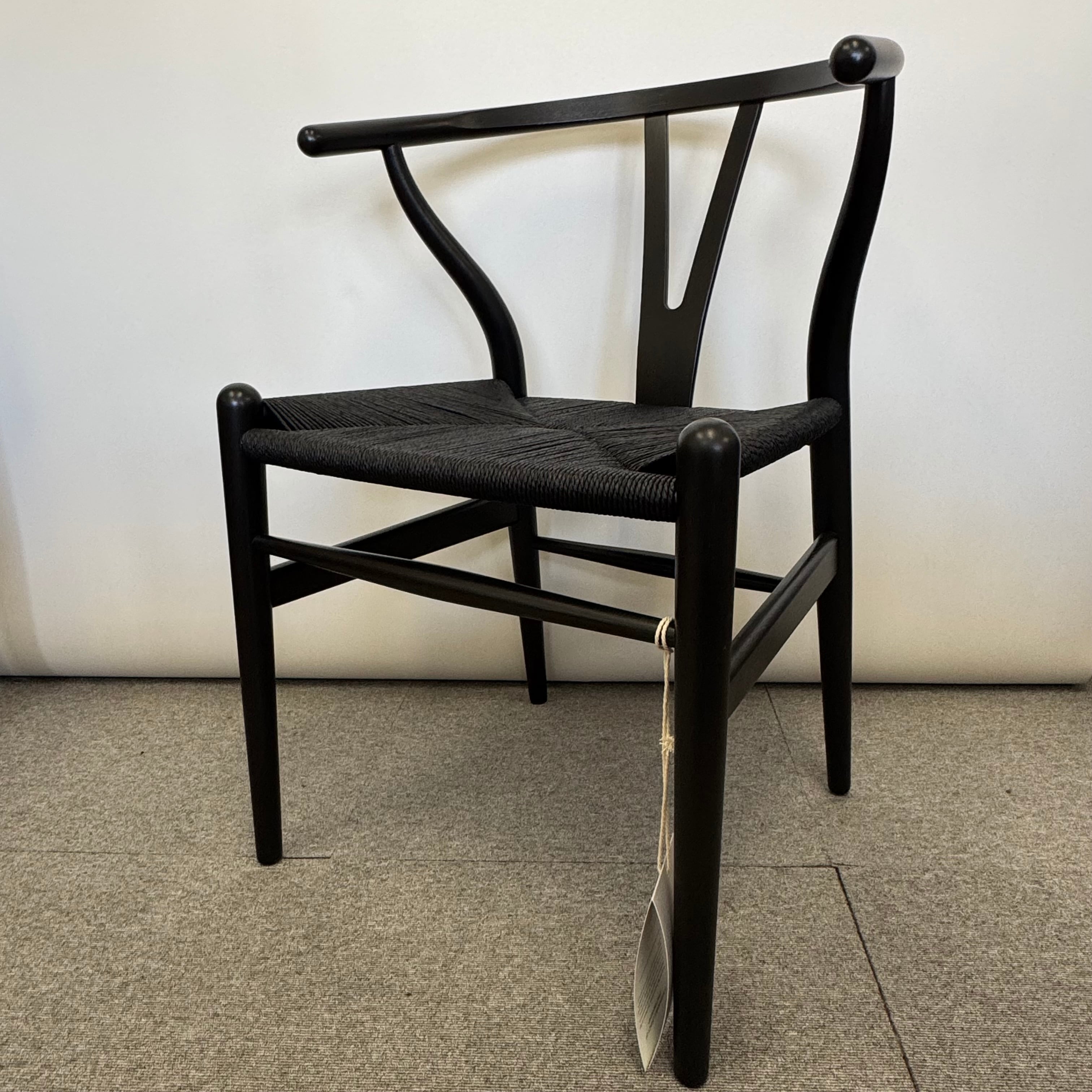 座面には、ナチュラルペーパーコードを一度漂白し、黒に再染色したブラックペーパーコードを採用。デンマークの熟練職人が一本一本丁寧に編み上げております。