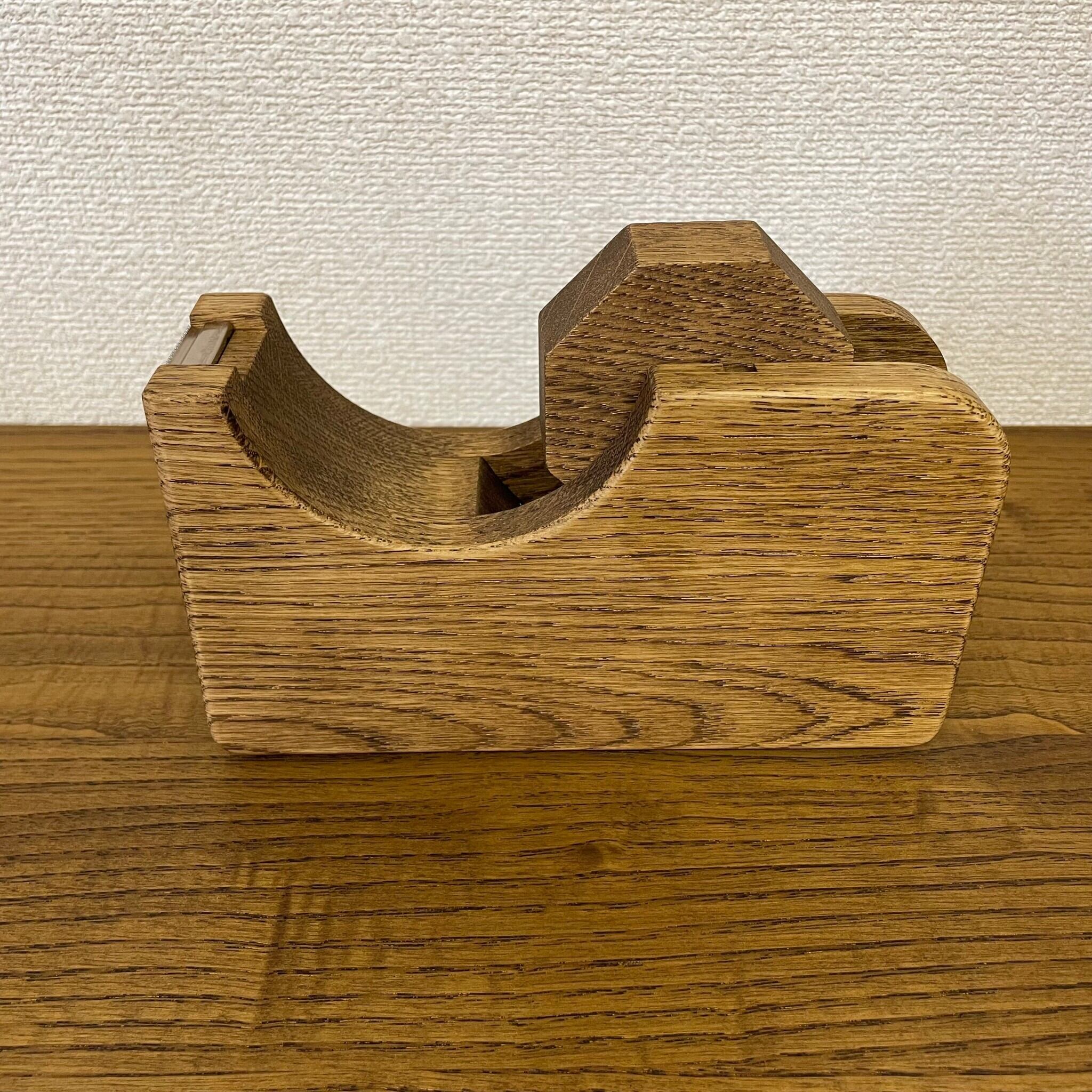 国産天然木の無垢材を使用して作られたテープカッター。重みがありテープを引いても動きづらい仕様になっています。表面はオイルで仕上げられているため、使い込むことによって経年変化を楽しむことの出来る商品です。