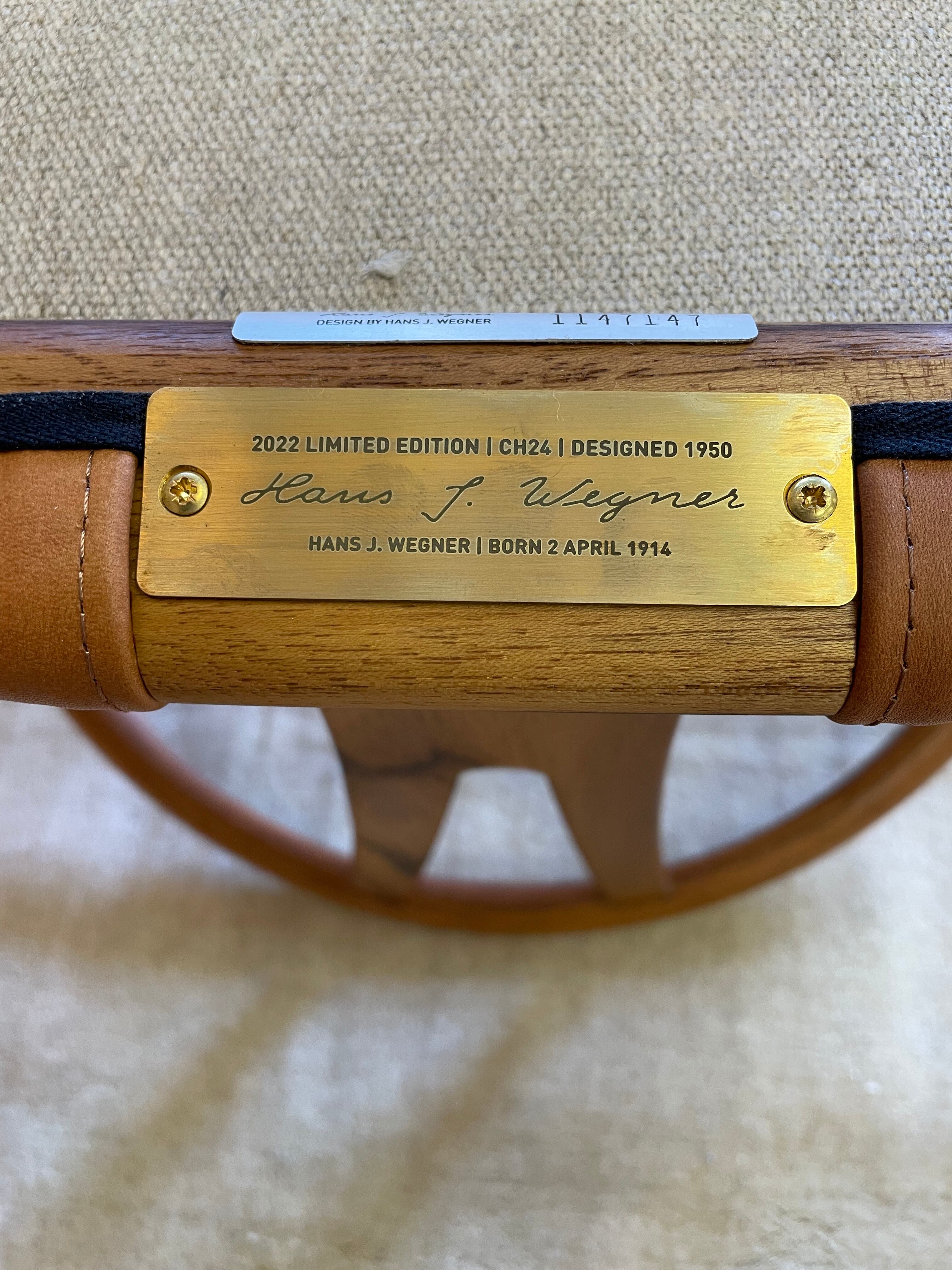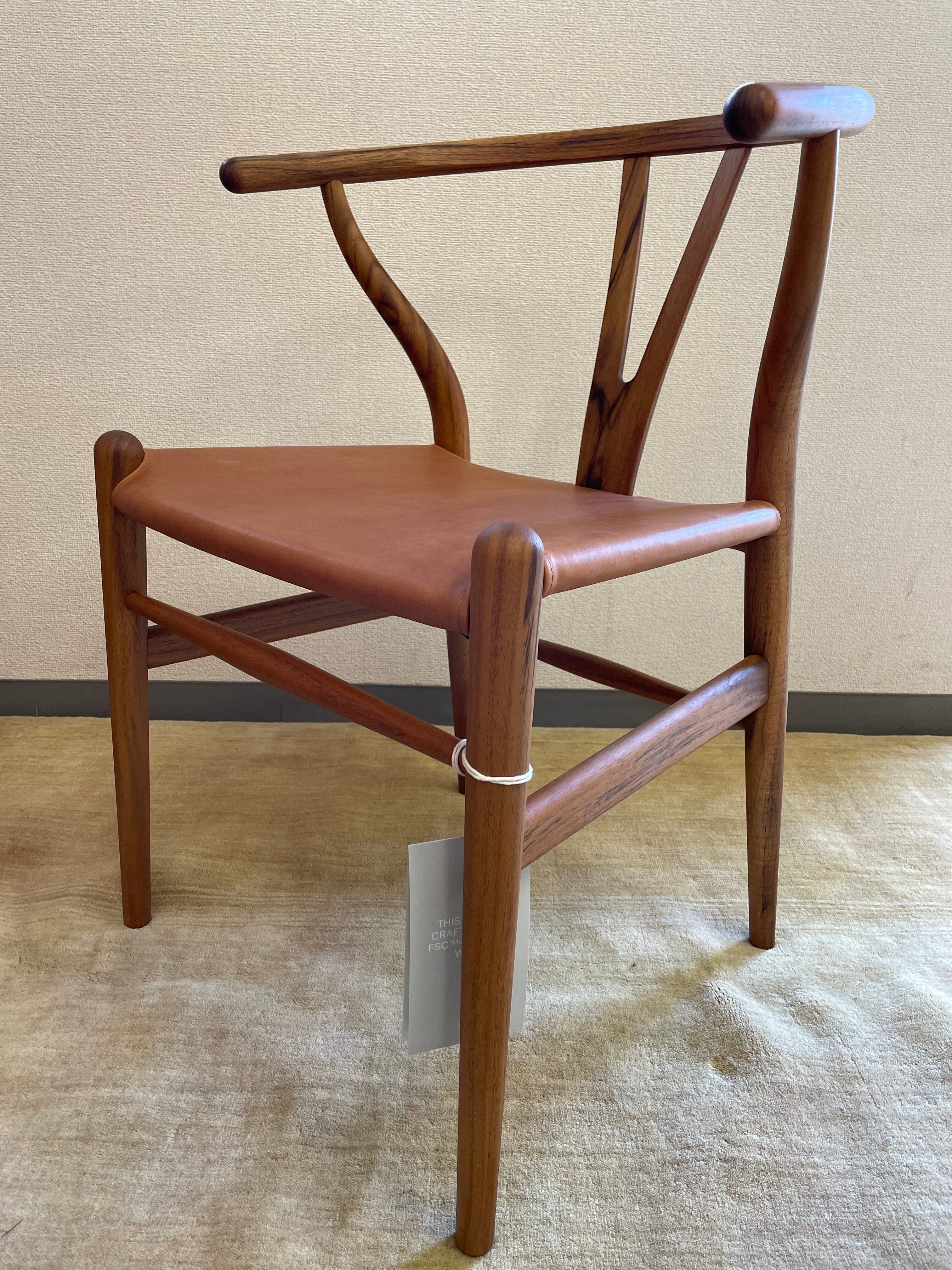 本商品はYチェアのデザイナーであるハンスJ.ウェグナーの2022年の生誕モデルで、チーク材でオイル仕上げ、座面はオリーブでなめした革を使用。生誕モデルを証明するプレートも付いています。また、本物であることを証明する証明書も付属。限定生産された大変貴重な商品です。