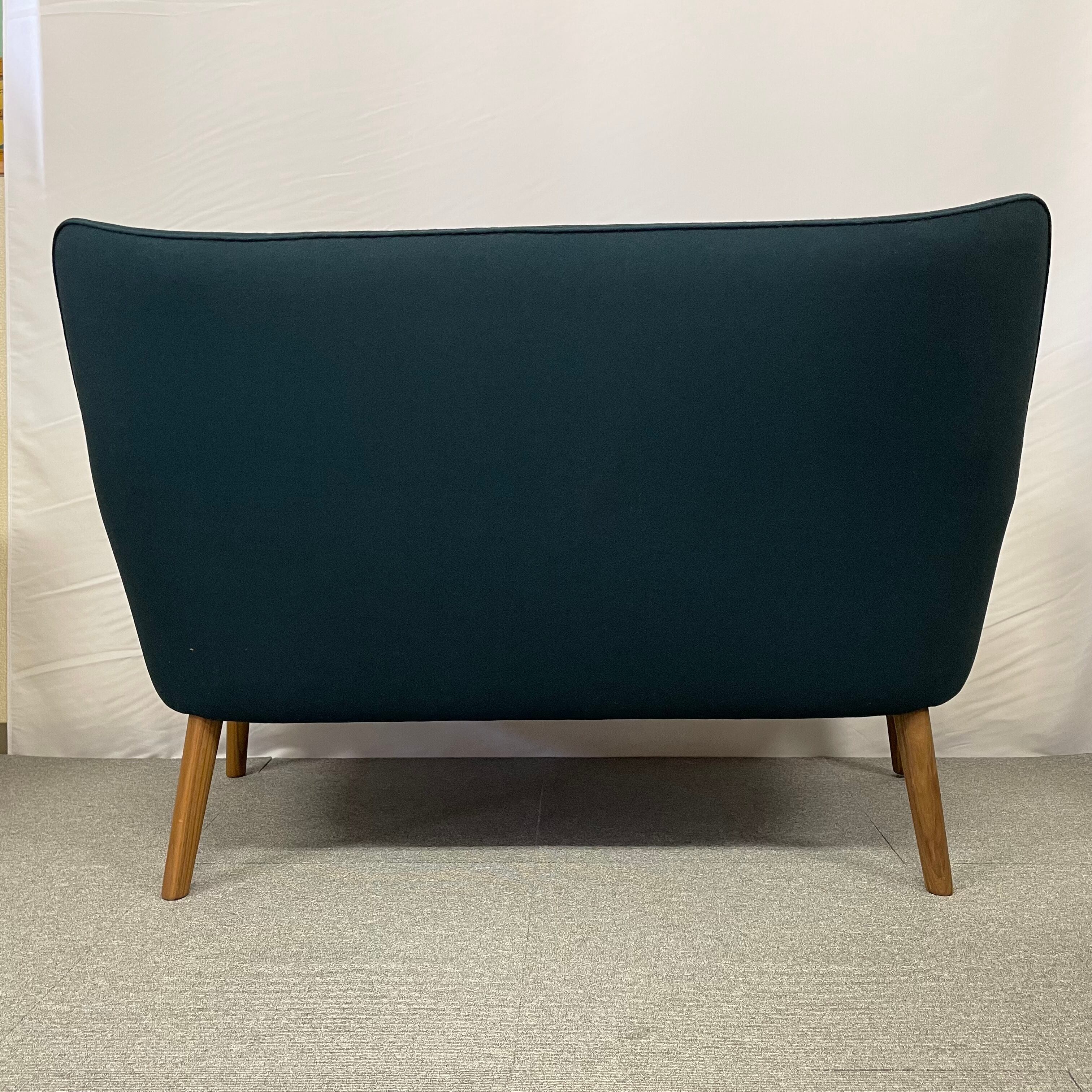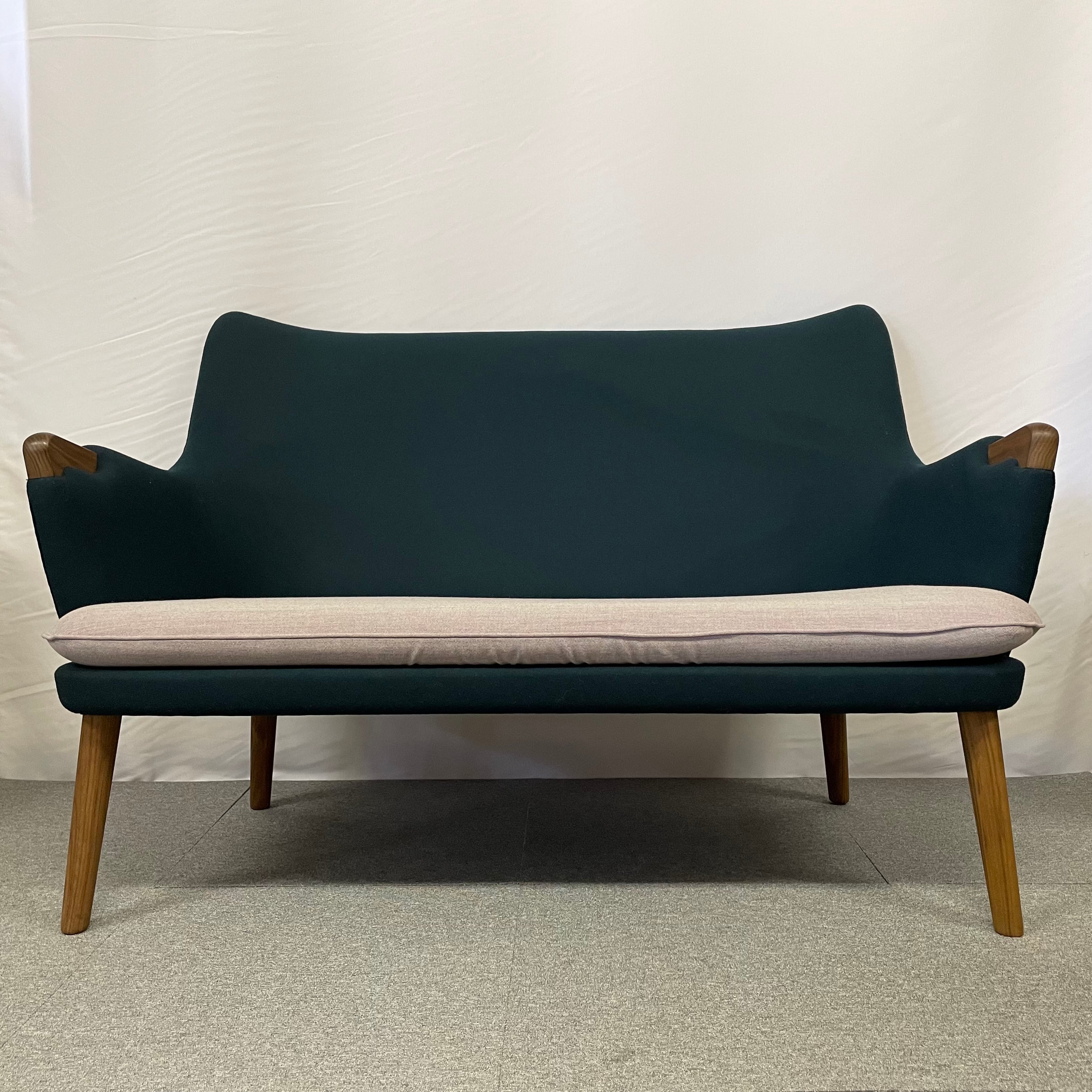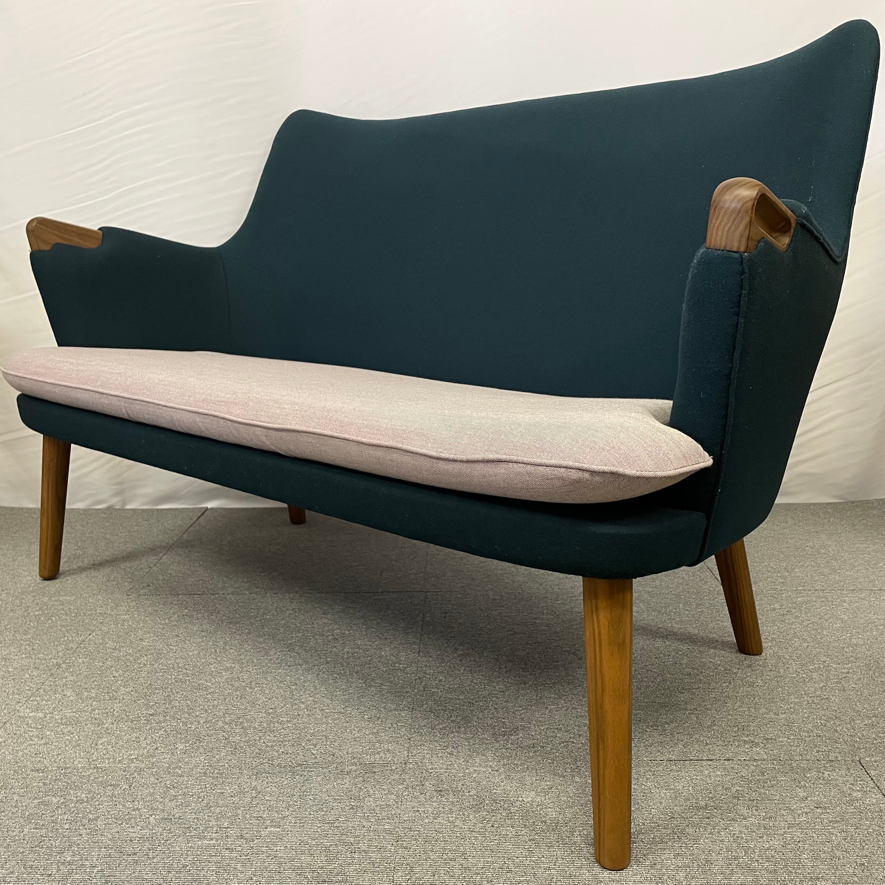 1952年にハンスJ.ウェグナーによってデザインされ、2018年に復刻されました。存在感がありながら、さほど場所を取らずに置くことができます。アーム部分と脚部はウォルナット材。