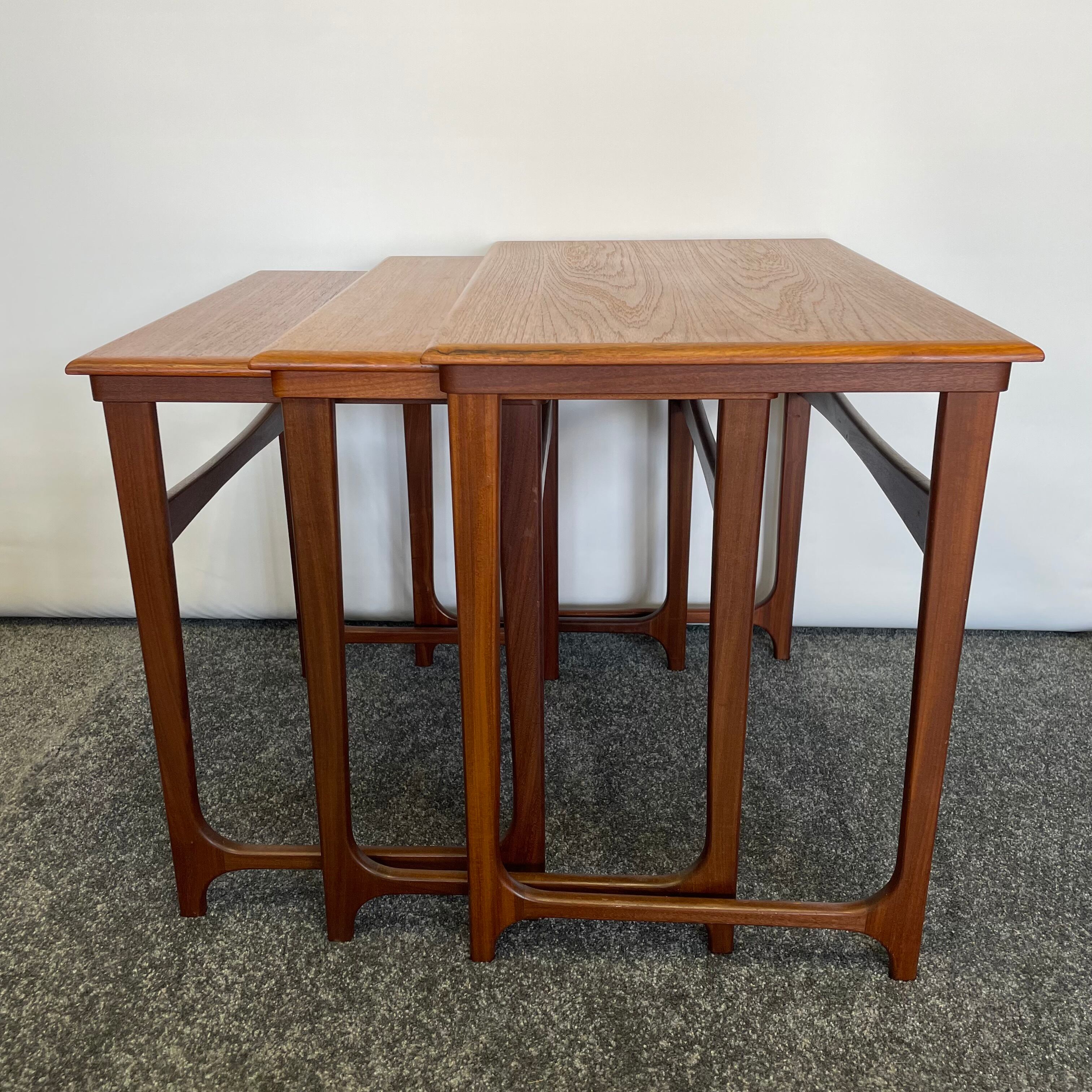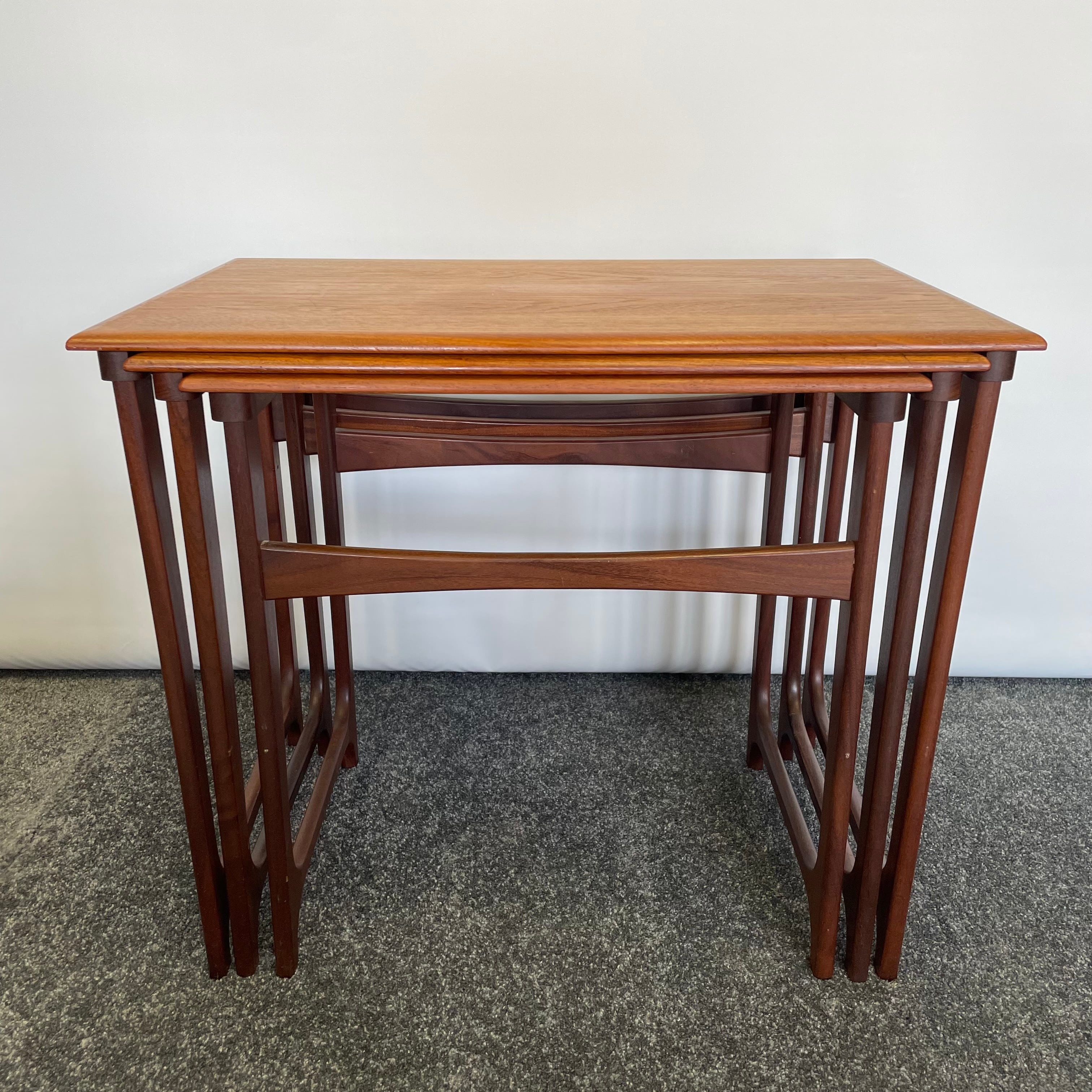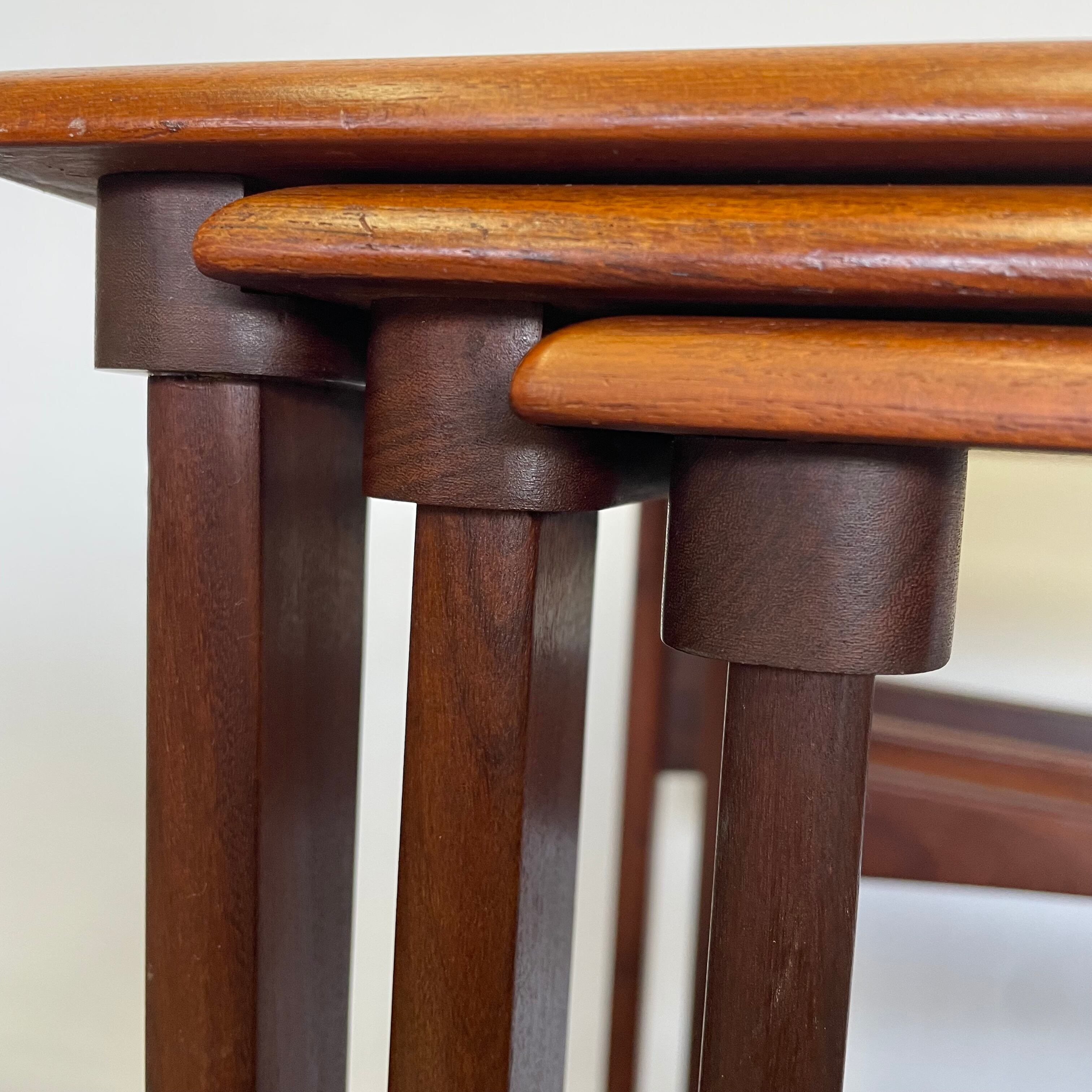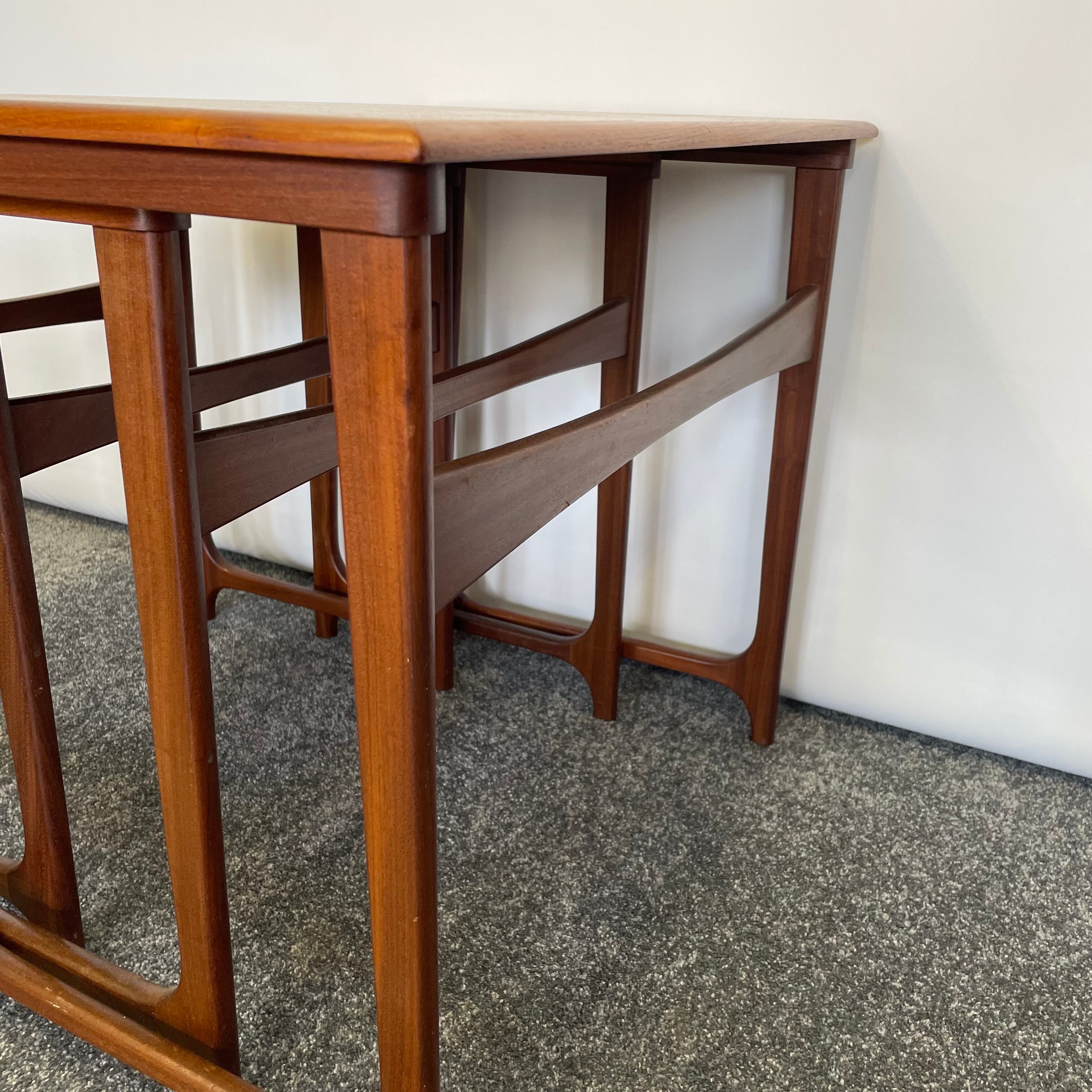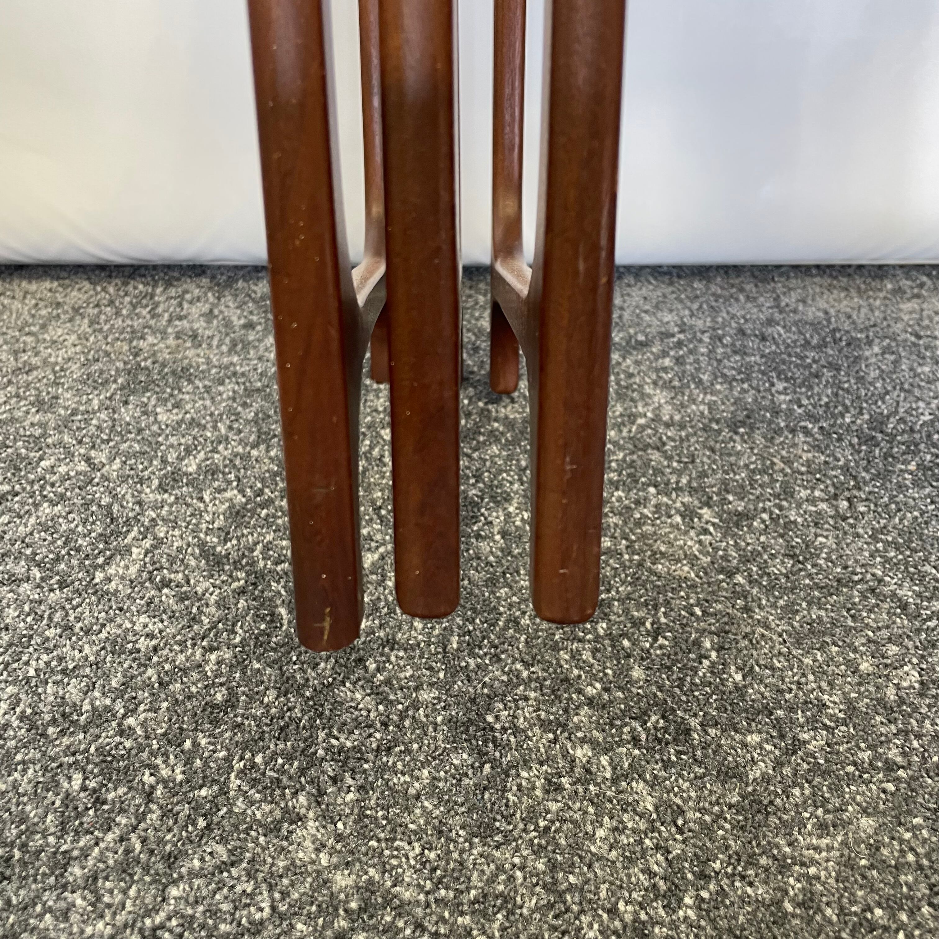 天板はチーク材を使用しており黄金色の美しい木目、脚など他のところは耐久性に優れたウォールナット材を使用しております。